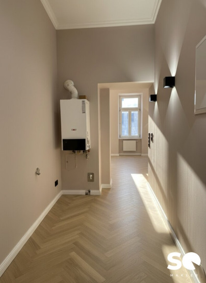 Die Wohnung wurde soeben generalsaniert und wird als hochwertiger Erstbezug angeboten. Historische Elemente wie Stuckatur treffen hier auf ein modernes Beleuchtungskonzept mit stilvollen Wandleuchten, edle Materialien und zeitloses Design.