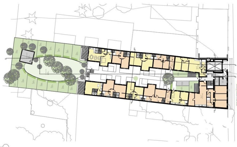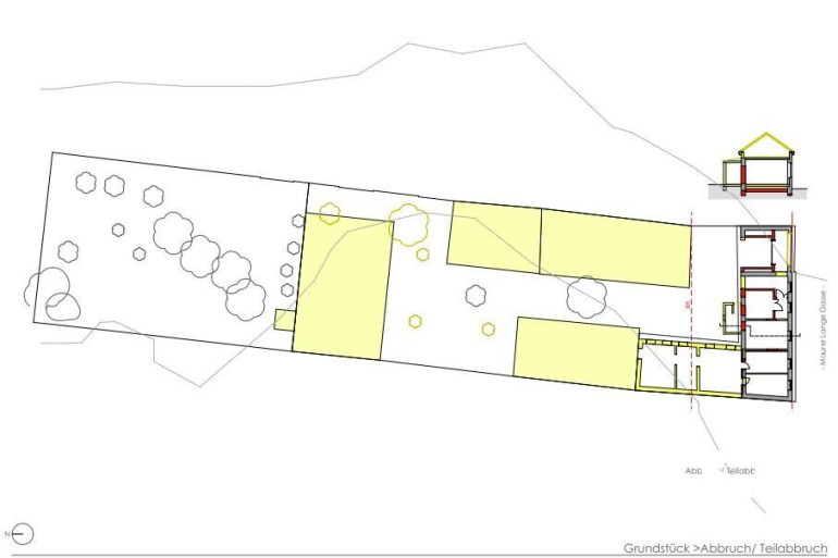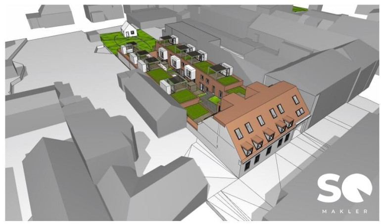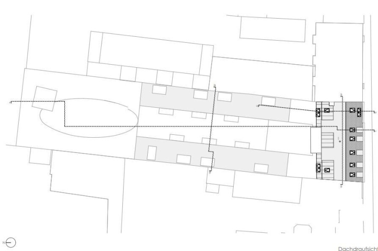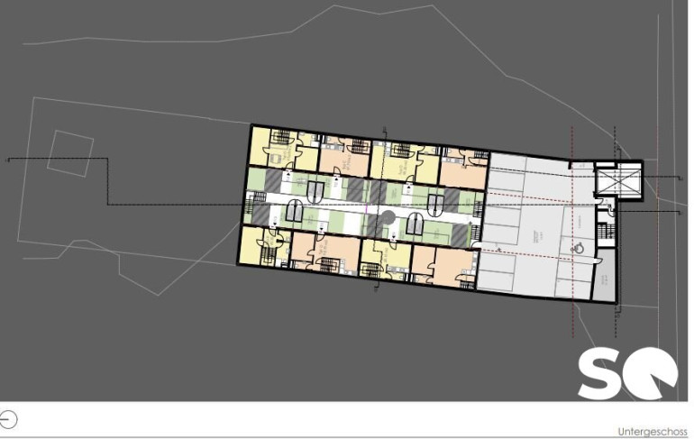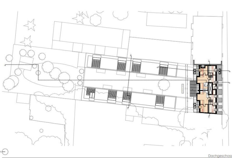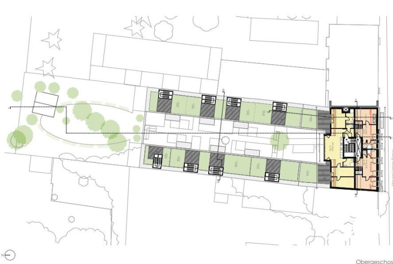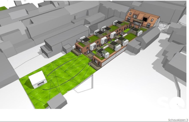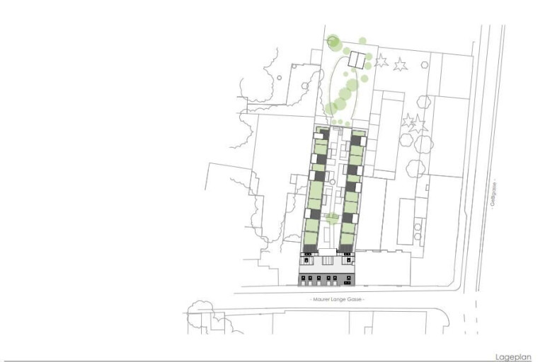 Gemeinschaftsgebäude sowie einen multifunktionellen Gemeinschaftsplatz vor, der von individuellen/wohnungszugeordneten Gemüse --/Blumenbeeten flankiert wird. Obligatorisch erforderliche Allgemeinbereiche wie Fahrrad und Müllräume sind ebenso vorgesehen Sämtliche relevanten Aspekte wie Abbruchthematik, Barrierefreiheit, KFZ Aufzug, versunkener Hof und öffentlichkeitswirksame Gestaltung sind mit den Behörden vorab besprochen Eine vertiefende Abstimmung und verbindliche Zusicherung ist ggfs im Zuge einer Einreichplanung zu erwirken.
