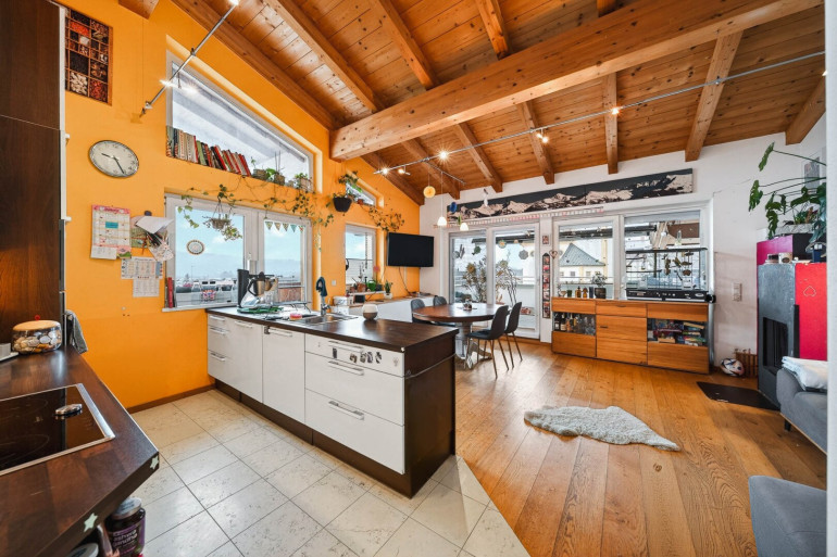 Das Dachgeschoss wurde im Jahr 2010 errichtet und überzeugt durch eine durchdachte Raumaufteilung sowie ein besonders wohnliches Ambiente. Ein sichtbarer Dachstuhl aus Holz verleiht der Wohnung ein außergewöhnliches Raumgefühl und sorgt für eine warme und einladende Atmosphäre.