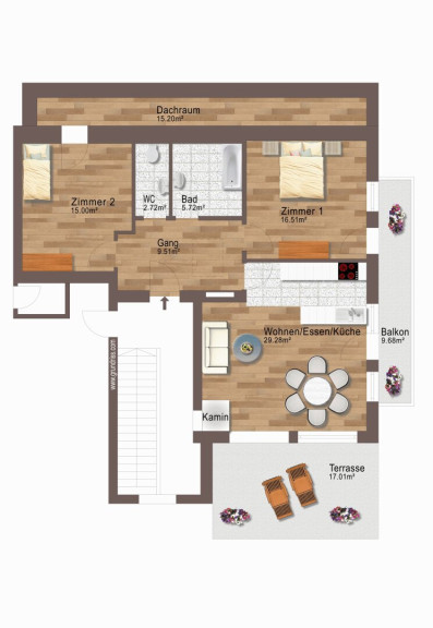 Diese Wohnung eignet sich ideal für Paare oder kleine Familien, die eine besondere Dachgeschosswohnung mit viel Charme und großzügigen Außenflächen suchen.