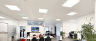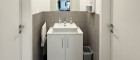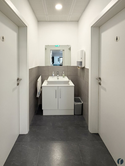 Ein Garderobenreich, getrennte WC-Einheiten, teilweise innenliegende Rollos, flexible Steckerleisten und blendfreie Rasterdeckenleuchten sorgen für ein angenehmes und funktionales Arbeitsumfeld.