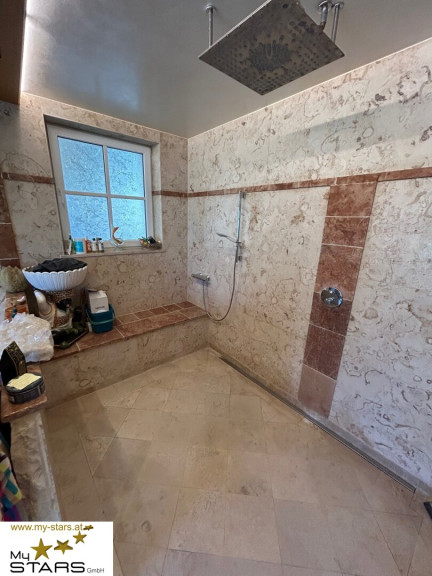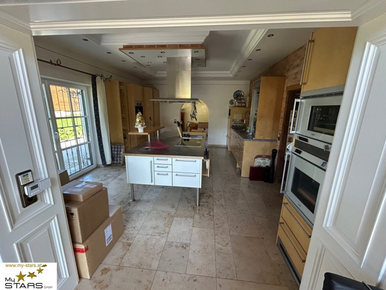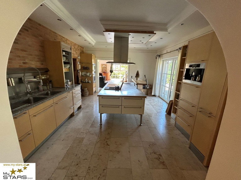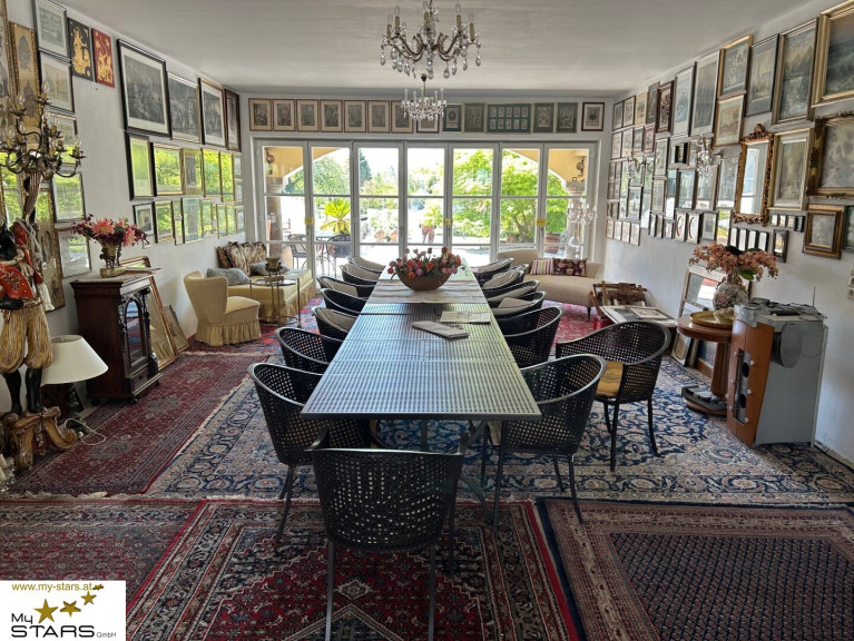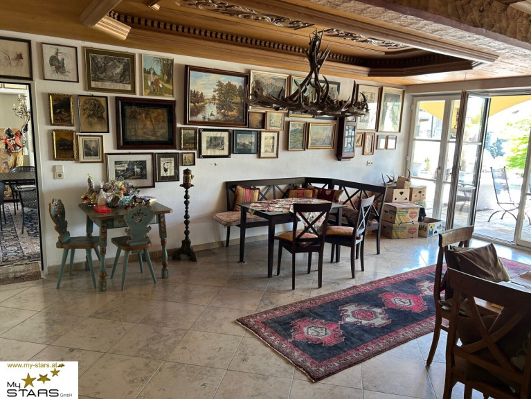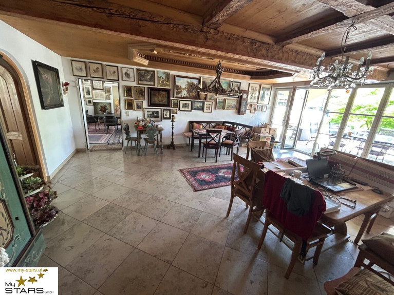 - Im Erdgeschoss gibt es weitere Räume die als Café oder für Veranstaltungen genutzt werden können. Vorhanden ist eine Gastro-Küche, ein Stüberl, und ein großer Veranstaltungsraum. Diese Räume umfassen zusätzlich ca. 140 m².