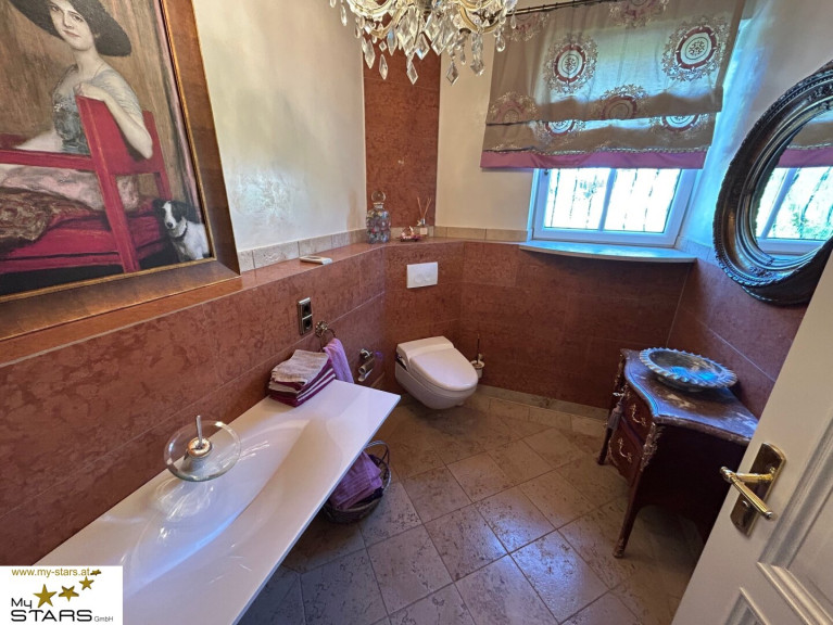 Die Außenanlagen sind einzigartig: große Terrassen, ein parkähnlicher Garten mit altem Baumbestand, der überdachte Pool. Viel Platz zum feiern, entspannen; für sich selbst oder für Gäste.