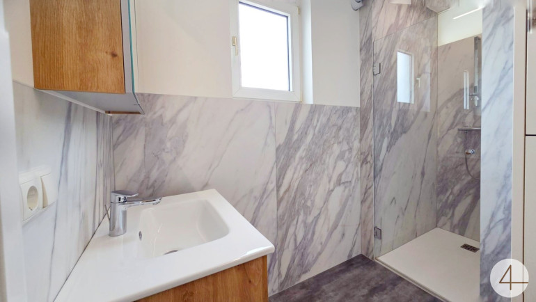 - Bad mit WC und ebenerdig begehbarer Dusche