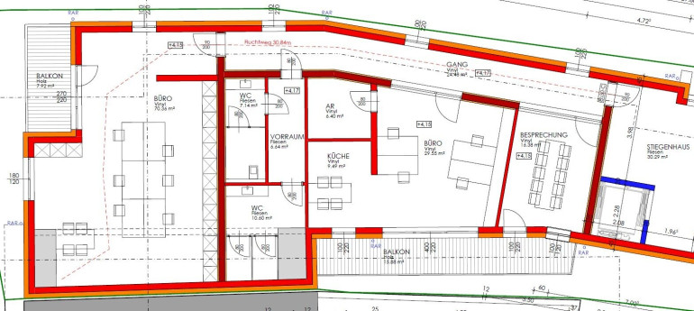 Besonders hervorzuheben sind die beiden großzügigen Balkone, der nicht nur für eine angenehme Atmosphäre sorgt, sondern auch ideal ist, um frische Luft zu schnappen und entspannte Pausen im Freien zu genießen. Die durchdachte Raumaufteilung umfasst zudem drei WCs, was den Komfort für Ihre Mitarbeiter und Kunden erheblich steigert.