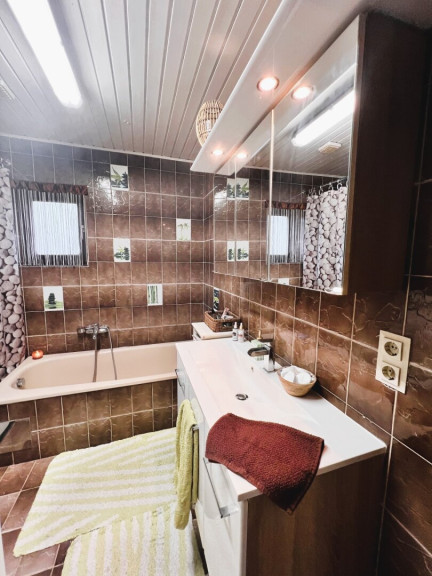- Badezimmer mit Wanne und WC