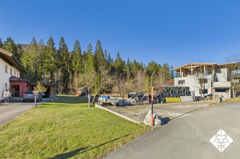 Das Grundstück befindet sich in sonniger Lage zwischen Walchsee und Kössen, eingebettet in eine beeindruckende Naturlandschaft mit direktem Blick auf den Zahmer Kaiser. Die umliegende Bergkulisse verleiht dem Standort eine besondere Ruhe und Wohnqualität. Rückseitig wird das Grundstück von einem idyllischen Bachlauf begrenzt, der das naturnahe Gesamtbild zusätzlich unterstreicht.