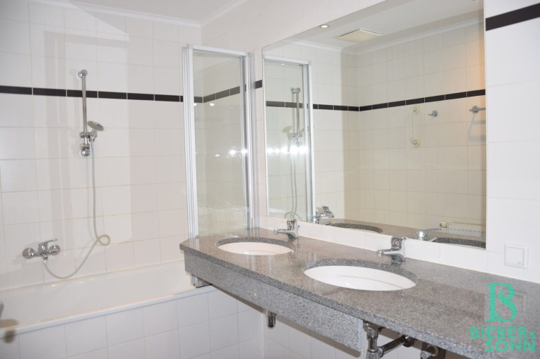 Die Ausstattung ist hochwertig, Parkett/Fliesenböden, komplett eingerichtete Küche mit Miele-Geräten, Telefonanschluß, SAT-Anlage, Gasetagenheizung. Ein Kellerabteil ist der Wohnung ebenfalls zugeordnet.
