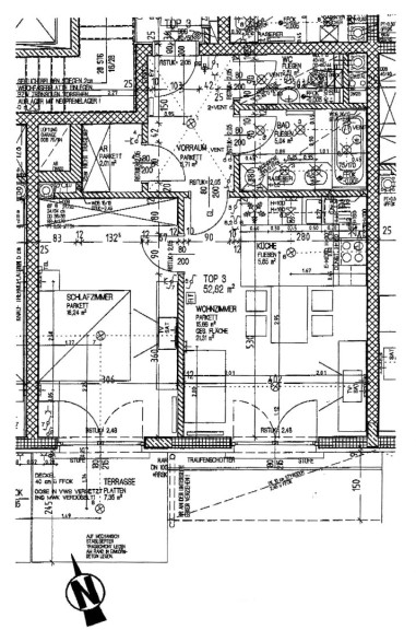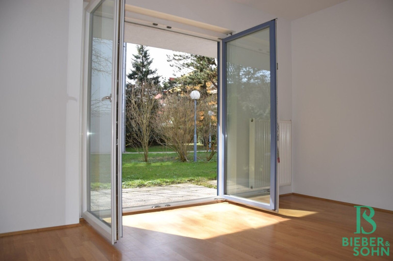 Im Erdgeschoss gelegen befinden sich auf einer Wohnfläche von ca. 53m² ein Wohnraum mit offengehaltener Küche, ein Zimmer, ein Vorraum, ein Abstellraum, ein Bad mit Wanne und ein separates WC. Vom Wohnraum und dem Zimmer aus ist die ca. 7m² große, nach Süden gerichtete Terrasse zu betreten, die in den Gemeinschaftsgarten übergeht.