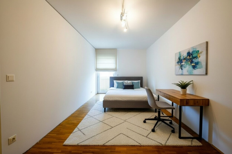 - 2 Schlafzimmer mit direktem Zugang zur 13m² großen Terrasse - eignen sich auch optimal für WG´s mit Bett und Schreibtisch