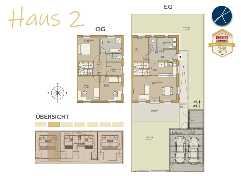 Auch im Außenbereich bietet das Projekt hohen Wohnkomfort: Zu jeder Einheit gehören ein Carport mit zwei PKW-Stellplätzen, vorbereitete E-Ladestellen sowie praktische Abstellräume. Die Gärten werden begrünt und bieten ausreichend Platz für Freizeit, Familie und Erholung.