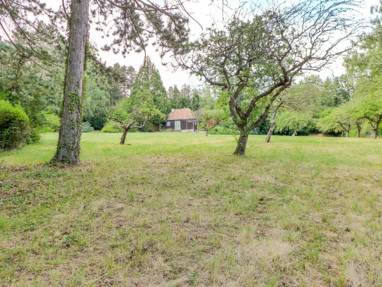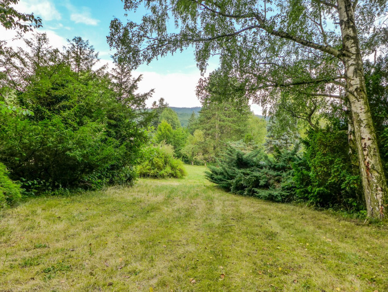 Das Grundstück (2.120 m²) ist derzeit mit einem sanierungsbedürftigen Holzhaus (ca. 45 m² Grundfläche) sowie zwei kleinen Holzschuppen bebaut.