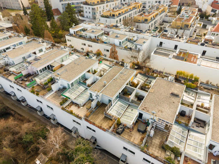 Zum Verkauf steht dieses außergewöhnliche Atriumreihenhaus mit rund 130 m² Wohnfläche und zwei Terrassen. Das Reihenhaus ist Teil einer exklusiven Wohnanlage mit 42 Einheiten, die 1999 vom renommierten Architekten Walter Stelzhammer konzipiert und von BUWOG errichtet wurde und sich in einer ruhigen Privatstraße befindet.