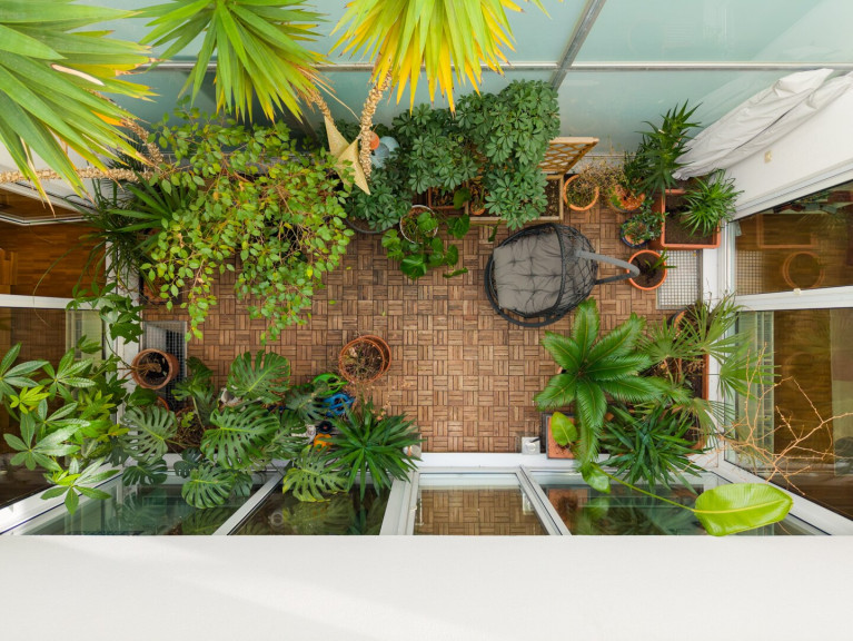 Das absolute Highlight dieser Immobilie ist das verglaste Atrium im Zentrum des Hauses. Es sorgt für eine beeindruckende Lichtstimmung und eröffnet vielfältige Nutzungsmöglichkeiten – ob als grüner Garten, stilvolle Terrasse oder private Ruheoase. Das Atrium ist überdacht, teilweise zu öffnen und zusätzlich mit einer Markise für den Sommer ausgestattet.