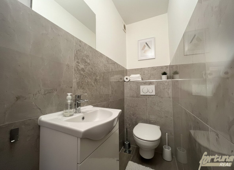 Das separate WC ist ebenfalls neu und verfügt zusätzlich über ein Handwaschbecken.