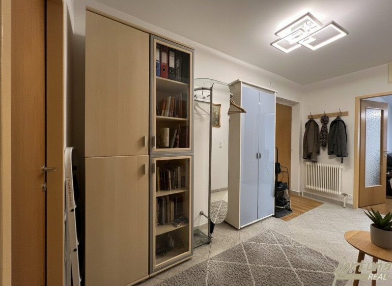 Der großzügige Vorraum bietet ausreichend Platz für Garderobe sowie zusätzlichen Stauraum. Von hier aus sind sämtliche Räume der Wohnung zentral erreichbar.