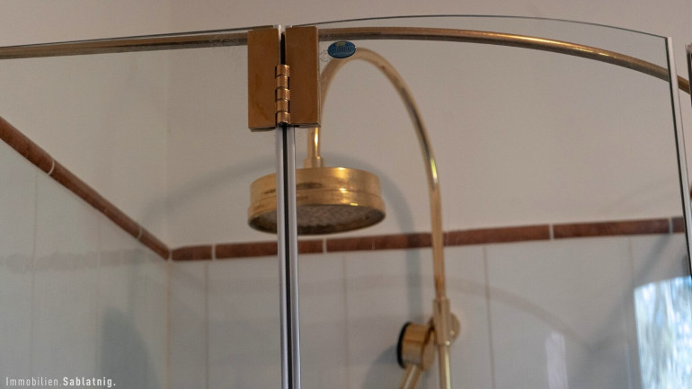 Das Badezimmer präsentiert sich besonders geräumig und ist mit einer komfortablen Regendusche ausgestattet. Die separate Toilette verfügt ebenfalls über ein Fenster.