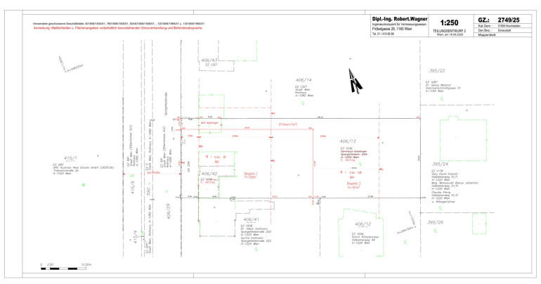 Zum Verkauf steht ein Baugrundstück in ruhiger Wohngegend mit ausgezeichneter städtischer Infrastruktur, einer Gesamtfläche von 767m² und einer Bauklasse: WI 6,5m ogk BB4 (bebaubare Gebäudefläche von 150m² brutto). Die Teilung des Grundstückes (MA 64 baubehördliche Bewilligung) erfolgt durch den Verkäufer.