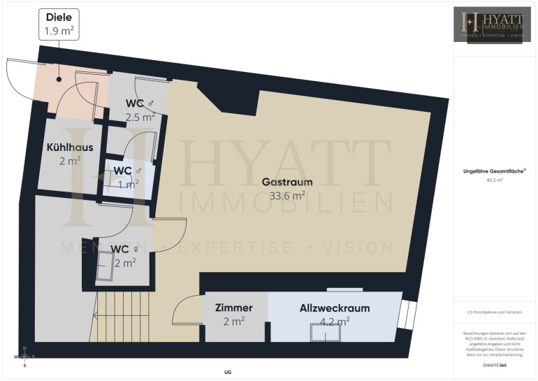 • Gastraum Untergeschoss: ca. 33,6 m²