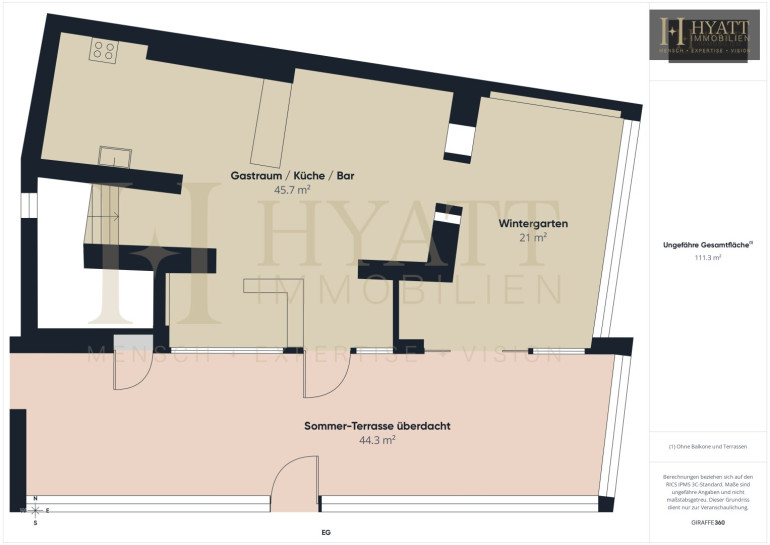 • Überdachte Terrasse: ca. 44,3 m²