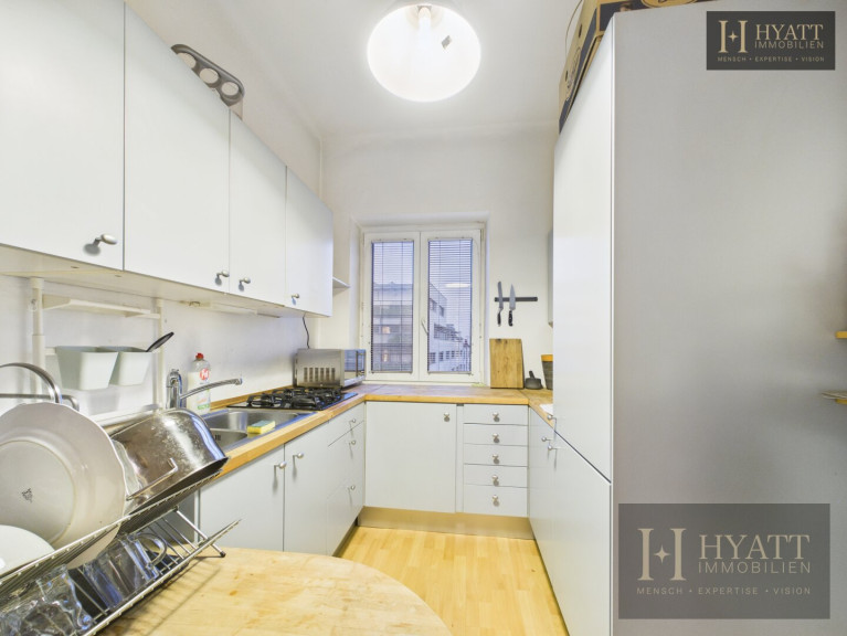 Die vorhandene Küche ist bereits ausgestattet, wodurch ein unkomplizierter Einzug möglich ist. Durch die östliche Ausrichtung profitieren die Räume von angenehmem Morgenlicht. Der gepflegte Zustand der Wohnung ermöglicht sowohl eine sofortige Nutzung als Eigenheim als auch eine attraktive Nutzung als Anlageobjekt.