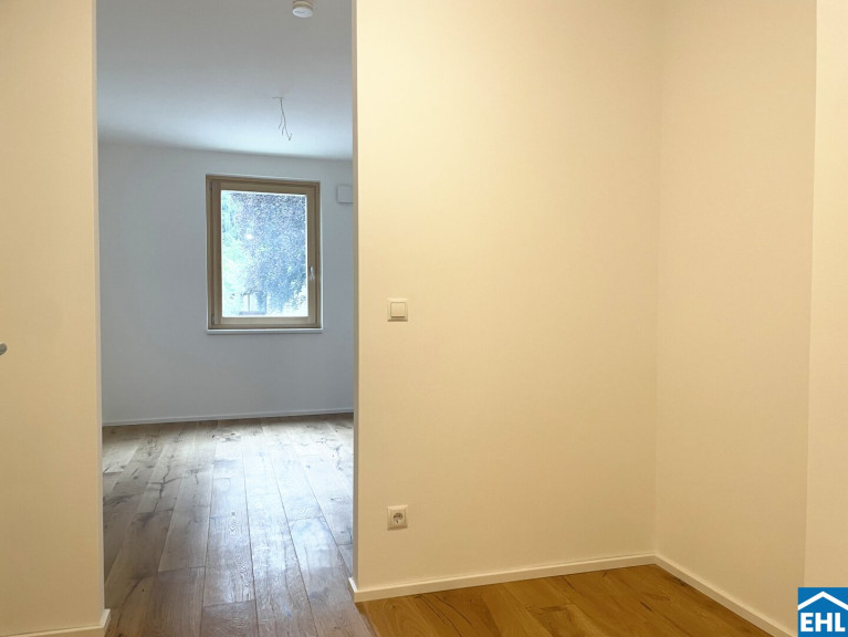Die Wohnungen sind großzügig geschnitten und zeichnen sich durch sehr intelligente Grundrissgestaltung aus. Alle Wohnungen verfügen über hochwertige Dielenböden in den Wohnräumen, großformatiges Feinsteinzeug in den Nebenräumen und Bädern, externen Sonnenschutz, Fußbodenheizung und eine Sommer-Temperierung. Die Küche ist nicht möbliert.