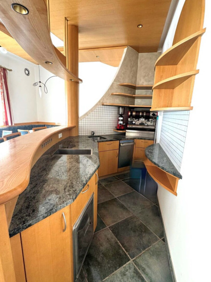 Die Küche ist vollständig ausgestattet und ermöglicht einen sofortigen gastronomischen Betrieb.