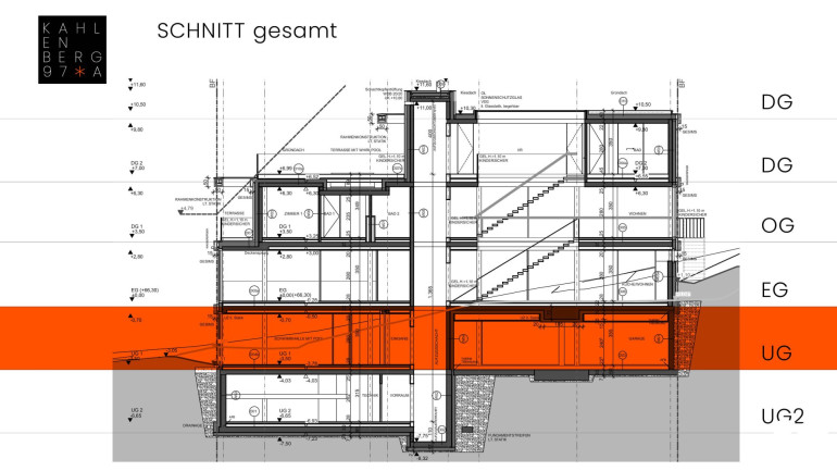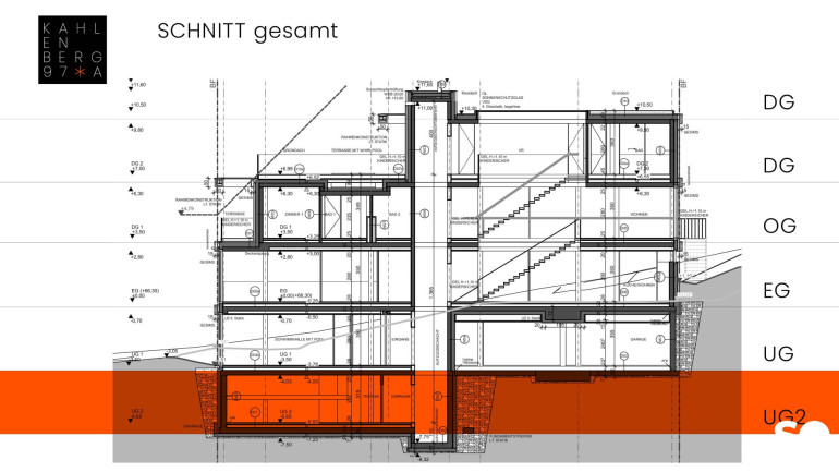 Das Grundstück ist terrassenförmig erschlossen und bietet vom oberen Geschoss aus einen Fernblick über ganz Wien.