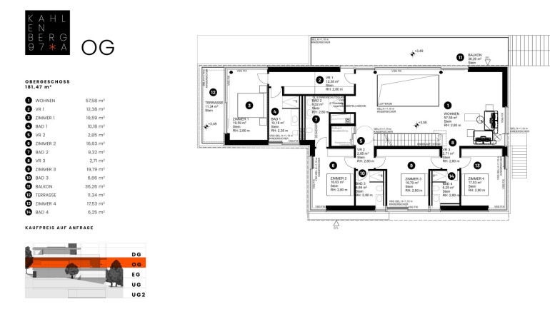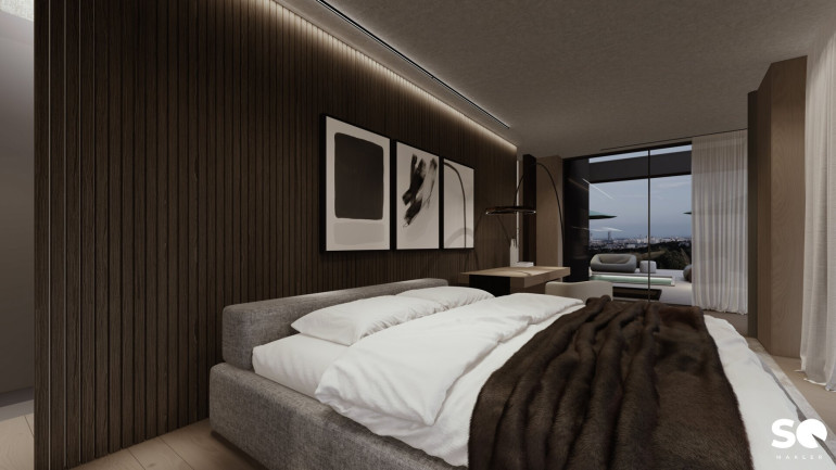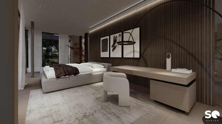 Die projektierte Villa sieht mehrere Schlafbereiche und Gästezimmer vor. Während das große Schlafzimmer (mit Bad und Ankleide) als On-Suite geplant ist, wurden auch die weiteren Schlafräume großzügig, modern und luxuriös gestaltet.