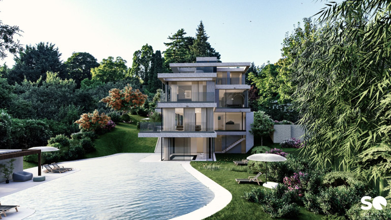 Aufgrund der leichten Hanglage schmiegt sich das Grundstück terrassenförmig in die Landschaft und besticht durch den wunderschönen Fernblick aus den oberen Geschossen oder der Pergola mit Outdoor Küche. Sowohl die absolute Ruhelage als auch die Verarbeitung natürlicher zeitloser Elemente vermitteln Wärme und Naturverbundenheit, die der Villa eine neue Dimension räumlicher Freiheit und Offenheit übertragen. Sie werden die Ruhe, zeitlose Eleganz und Naturverbundenheit des Projektes zu schätzen wissen.