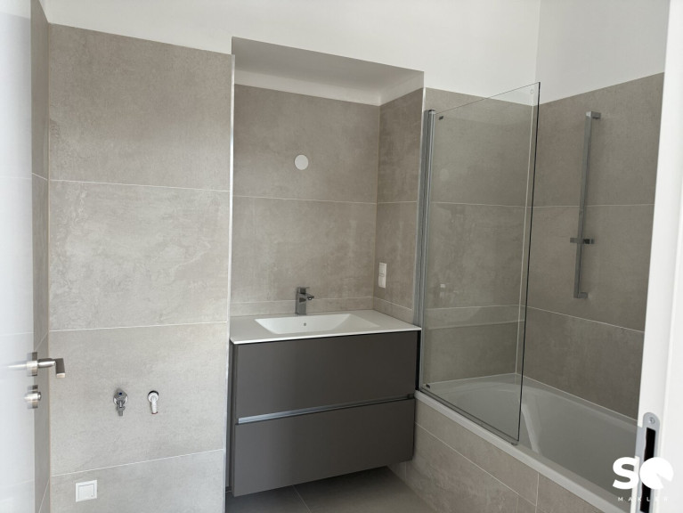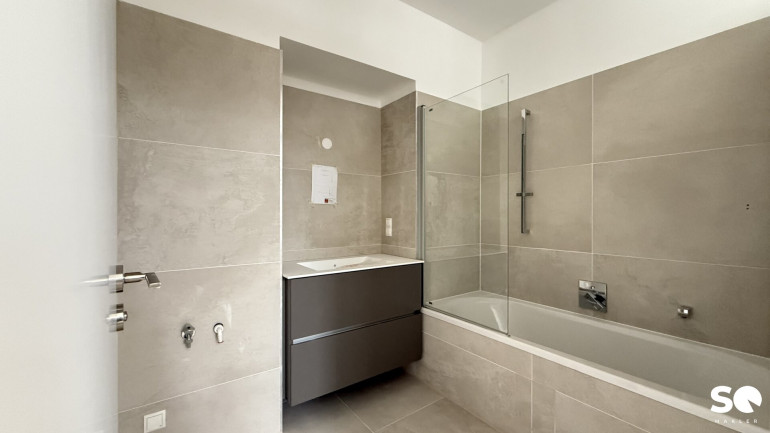 - Extra Bad mit Badewanne, Handwaschbecken und Waschmaschinenanschluss