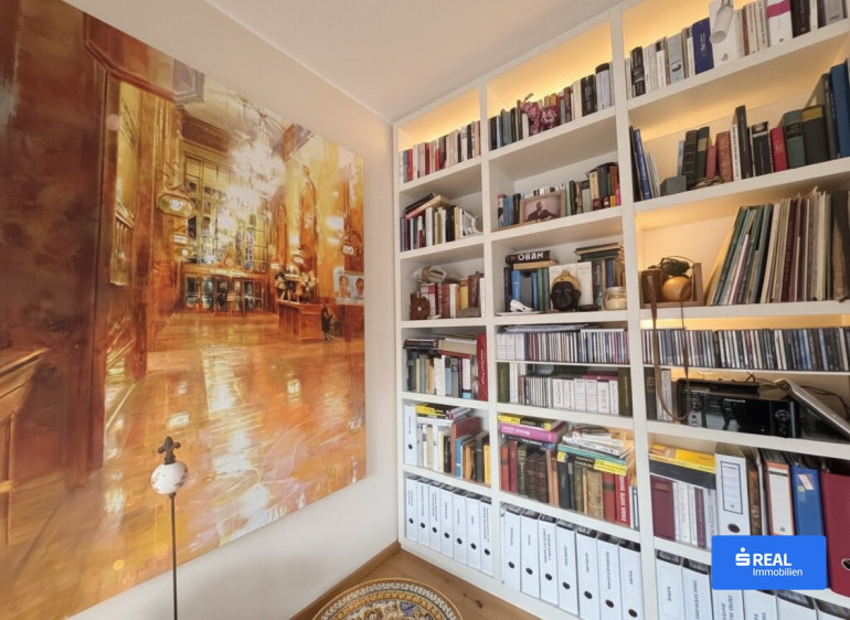 Hier spürt man die besondere Handschrift des Hauses: den warmen Charakter der Massivholzbauweise, die edle Haptik echter Holzfußböden und das Spiel des Lichts, das durch großzügige Glasflächen in jeden Winkel fällt. Modernste Technik fügt sich hier unaufdringlich in das Gesamtbild ein – von der leisen Fußbodenheizung über die effiziente Wärmepumpe mit Tiefenbohrung bis hin zur leistungsstarken Photovoltaikanlage. Dreifachverglaste Fenster mit integrierten Rollläden sorgen für angenehmes Raumklima zu jeder Jahreszeit.
