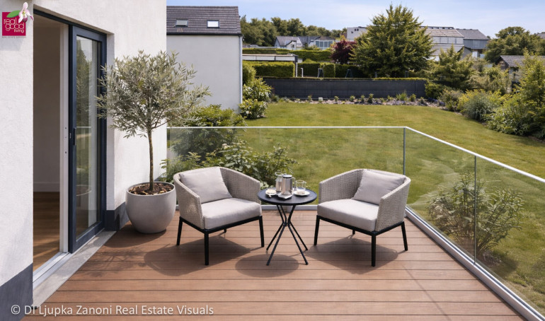 Mehrere Terrassenflächen sowie zwei PKW-Stellplätze direkt beim Haus sorgen für zusätzlichen Komfort im Alltag und unterstreichen den praktischen Charakter dieser Immobilie.