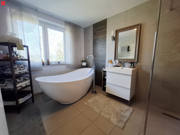 • Freistehende Designer Badewanne im Hauptbadezimmer