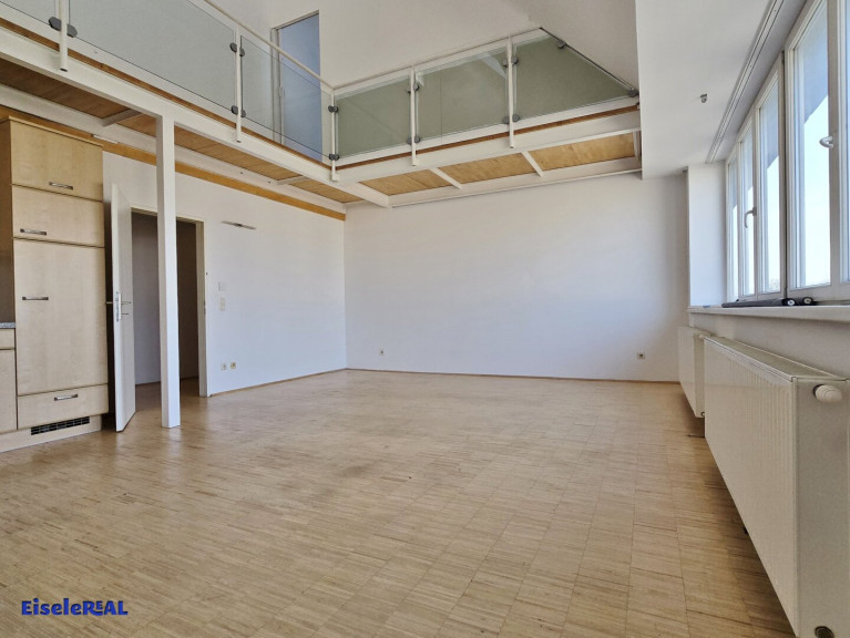 Im 3. Stock befindet sich der Eingang in die Wohnung. Auf dieser Ebene befindet sich ein geräumiges Wohnzimmer mit gut integrierter offener Küche, hier haben Sie Platz für einen tollen Ess-, Couch- und Lebensbereich. Tolles Ambiente durch die offene Galerie bis oben. Das untere Bad ist mit Dusche, Waschbecken und WC ausgestattet.