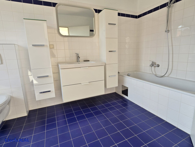 Das obere Bad ist mit Wanne, Waschbecken, WM Anschluss und Fenster ausgestattet.