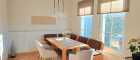 Der Wohnbereich geht offen in das Esszimmer über, in dem ein großer Esstisch ausreichend Platz für Familie und Freunde bietet – perfekt für gemeinsame Abende und gesellige Treffen.