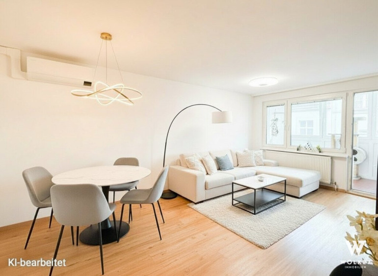 Ein besonderes Highlight ist die verglaste Loggia mit ca. 6,75 m², die südöstlich ausgerichtet ist und den Wohnraum auf angenehme Weise erweitert – ideal für sonnige Morgenstunden und entspannte Momente zu jeder Jahreszeit. Wohn- und Schlafzimmer sind klimatisiert und sorgen auch an warmen Tagen für ein angenehmes Raumklima. Der große Vorraum mit Videosprechanlage, das Badezimmer mit Handtuchheizkörper sowie ein separates WC unterstreichen den durchdachten und komfortablen Charakter der Wohnung. Ein Kellerabteil gehört selbstverständlich ebenfalls zur Wohnung.