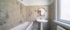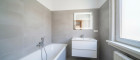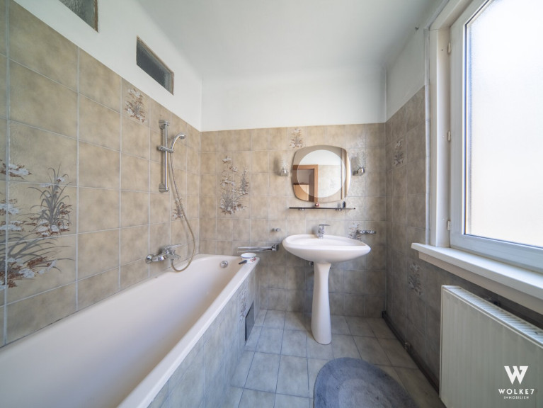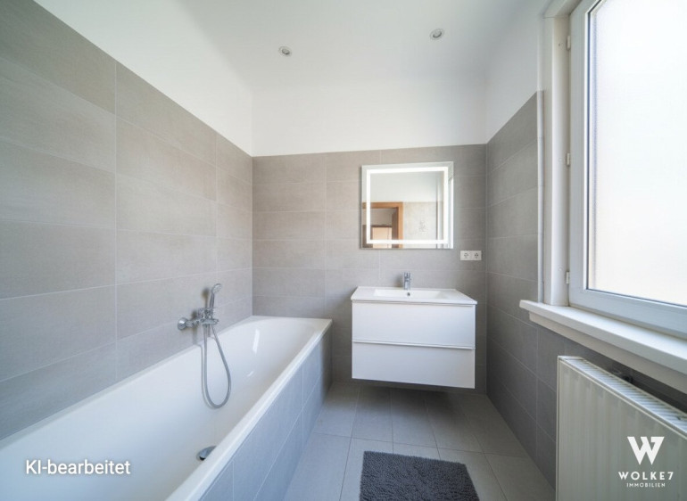 Das Badezimmer mit Fenster und Badewanne sorgt für Tageslicht und angenehmen Komfort. Zusätzlich stehen ein separates WC sowie ein praktischer Abstellraum zur Verfügung. Ein Kellerabteil mit ca. 4 m² bietet zusätzlichen Stauraum.