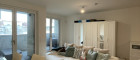 - Wohn-/ Schlafzimmer mit offener Wohnküche (vollausgestattet) & Zugang zur Loggia mit Blick in den Innenhof des Projektes