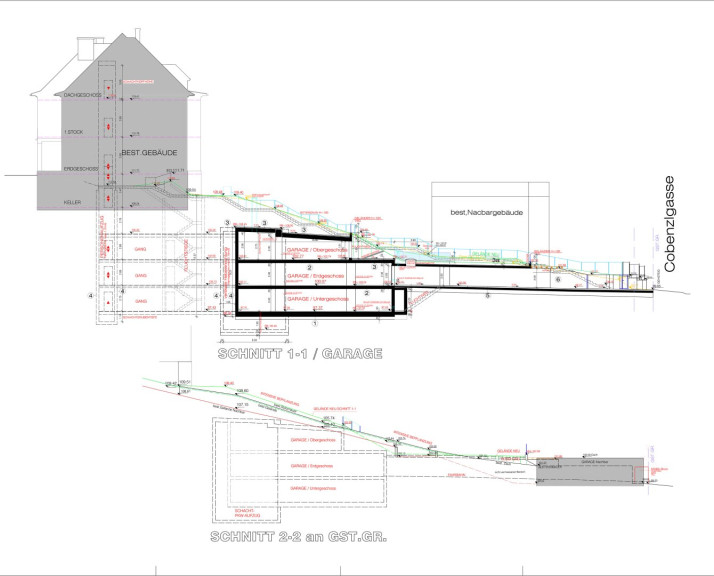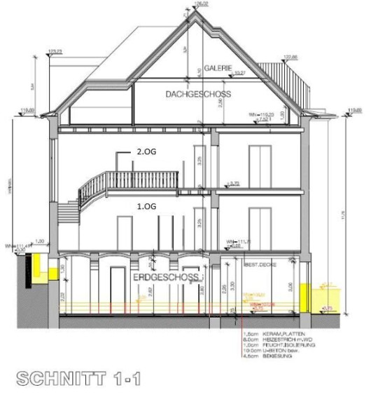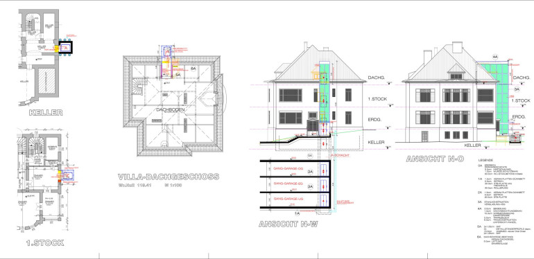 Die sanierungsbedürftige Bestandsvilla bietet die seltene Möglichkeit, ein exklusives Wohnprojekt ohne langwierige Bewilligungsverfahren zu realisieren – sämtliche Umbauten wurden bereits eingereicht und genehmigt. Geplant ist eine repräsentative Wohnfläche von rund 680 m², verteilt auf vier großzügige Wohngeschosse mit beeindruckenden Raumhöhen von ca. 3,2 m, die ein besonders großzügiges und lichtdurchflutetes Wohnambiente schaffen. Ein besonderes Highlight bildet der Dachausbau mit rund 210 m², der zusätzliche Gestaltungsmöglichkeiten eröffnet und teilweise Blick über Wien bietet. Ebenso hervorzuheben ist die bereits bewilligte Tiefgarage auf drei Ebenen mit insgesamt rund 519 m². Ein geplanter Lift verbindet die Garage komfortabel mit allen Wohngeschossen.