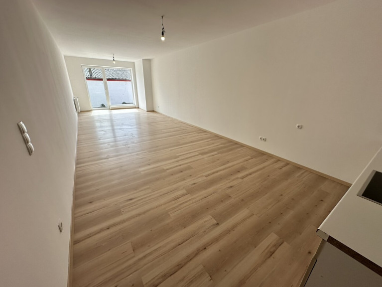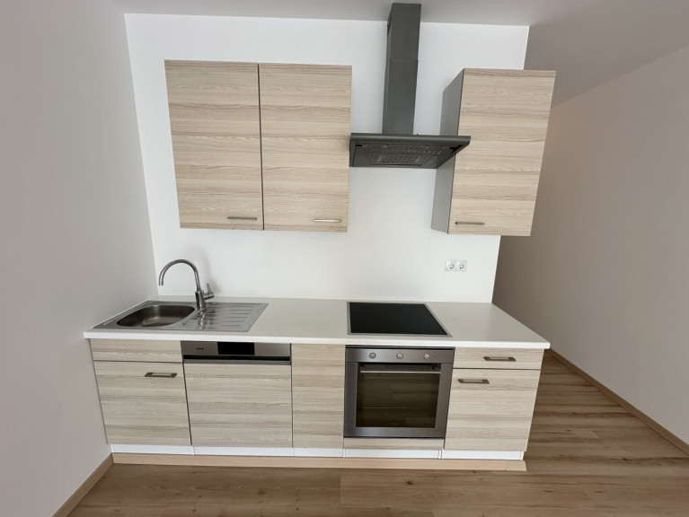 Diese Wohnung in 3121 Karlstetten besteht aus einem großem Zimmer mit eingebauter Küchenzeile und Kühlschrank.