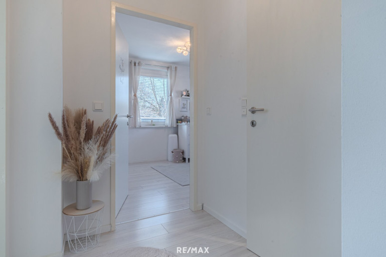 Neben dem Wohnbereich stehen zwei weitere Zimmer zur Verfügung, die sich flexibel als Schlafzimmer, Kinderzimmer oder Homeoffice nutzen lassen. Das Badezimmer ist mit einer Badewanne ausgestattet, zusätzlich gibt es ein separates WC sowie einen Abstellraum, der für praktischen Stauraum im Alltag sorgt.