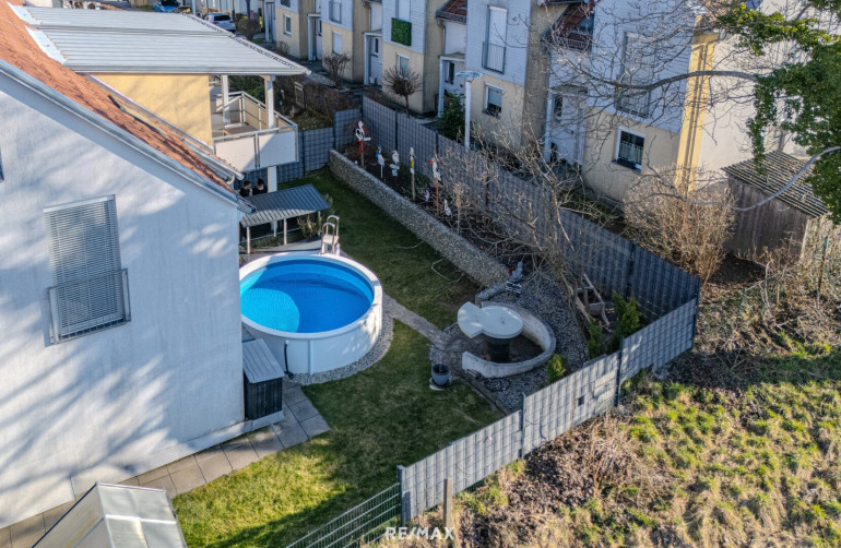 Mit rund 150 m² bietet der Garten viel Platz zum Spielen, Entspannen oder Gärtnern. Zusätzlich sorgen ein Pool, ein Glashaus sowie eine praktische Gartenhütte für vielseitige Nutzungsmöglichkeiten und machen den Außenbereich zu einer echten Wohlfühloase für die ganze Familie.