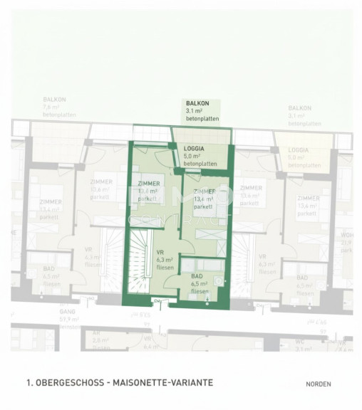 - Jede Wohnung mit privater Freifläche (Loggia, Balkon, Terrasse, Eigengarten)