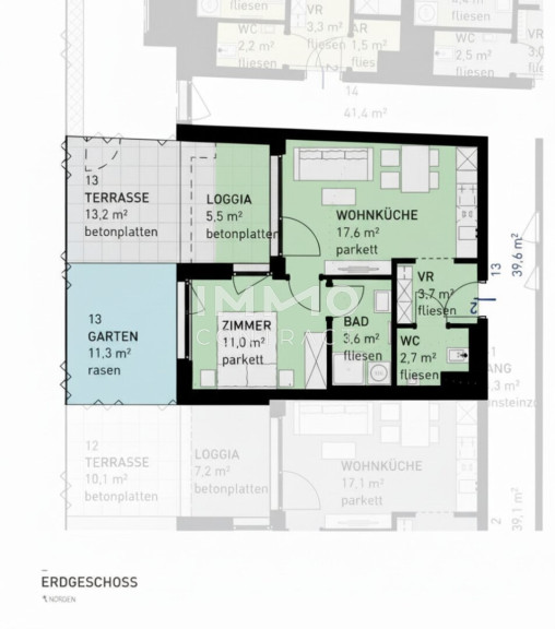 - Jede Wohnung mit privater Freifläche (Loggia, Balkon, Terrasse, Eigengarten)