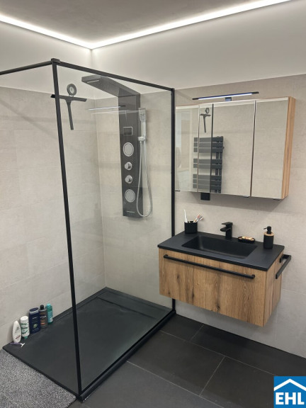 - Renoviertes Badezimmer mit Dusche und Waschmaschinenanschluss