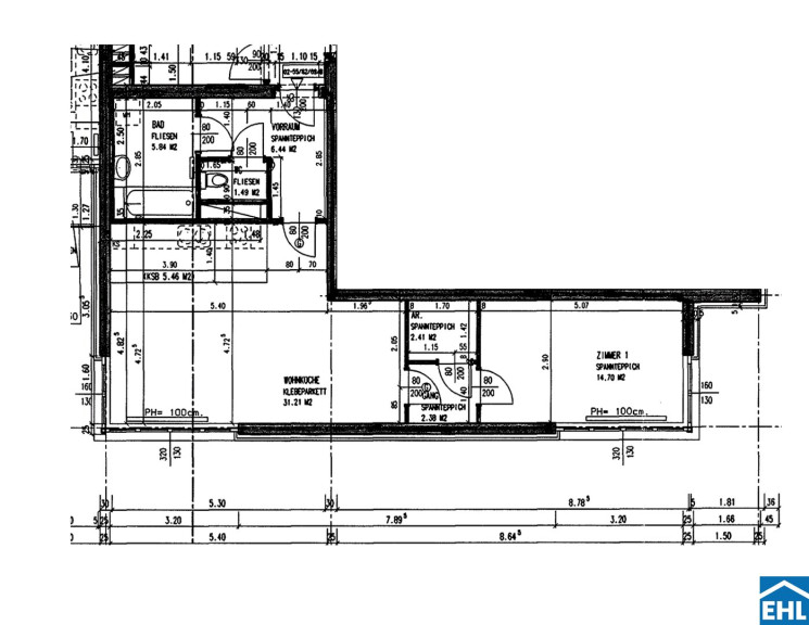 Die Wohnung überzeugt mit einer harmonischen Kombination aus eleganten Parkett- und Fliesenböden, die ein stilvolles und zugleich gemütliches Wohnambiente schaffen.