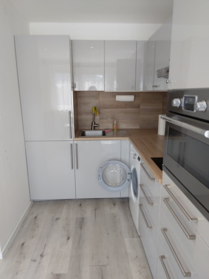 Die moderne Küche ist mit E-Herd, Backrohr, Kühlschrank, Dunstabzug, Abwasch und Küchenkästen ausgestattet.