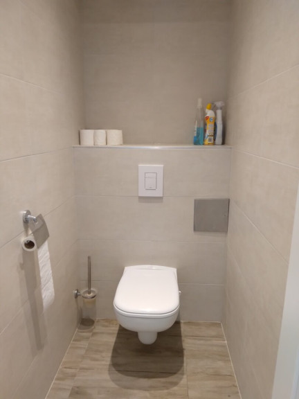 Das Badezimmer ist mit einer Dusche und einem Waschbecken ausgestattet, das WC ist separat und wurde ebenfalls modern und hochwertig renoviert.